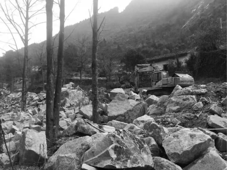 这是望仙谷变嫌时挖出的烧毁石料(2018年摄)。(望仙谷景区供图)