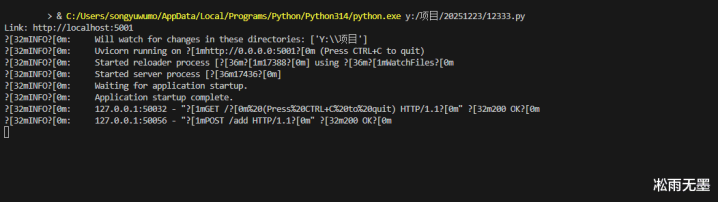 运转遵循!探问地址0.0.0.0:5001